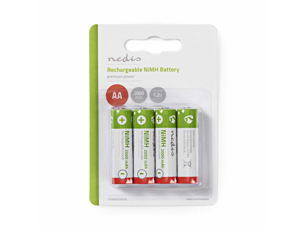 Nabíjecí baterie Nedis® typu Ni-MH, velikost R6 (AA), kapacita 2000 mAh, dodávány 4ks v blistru.