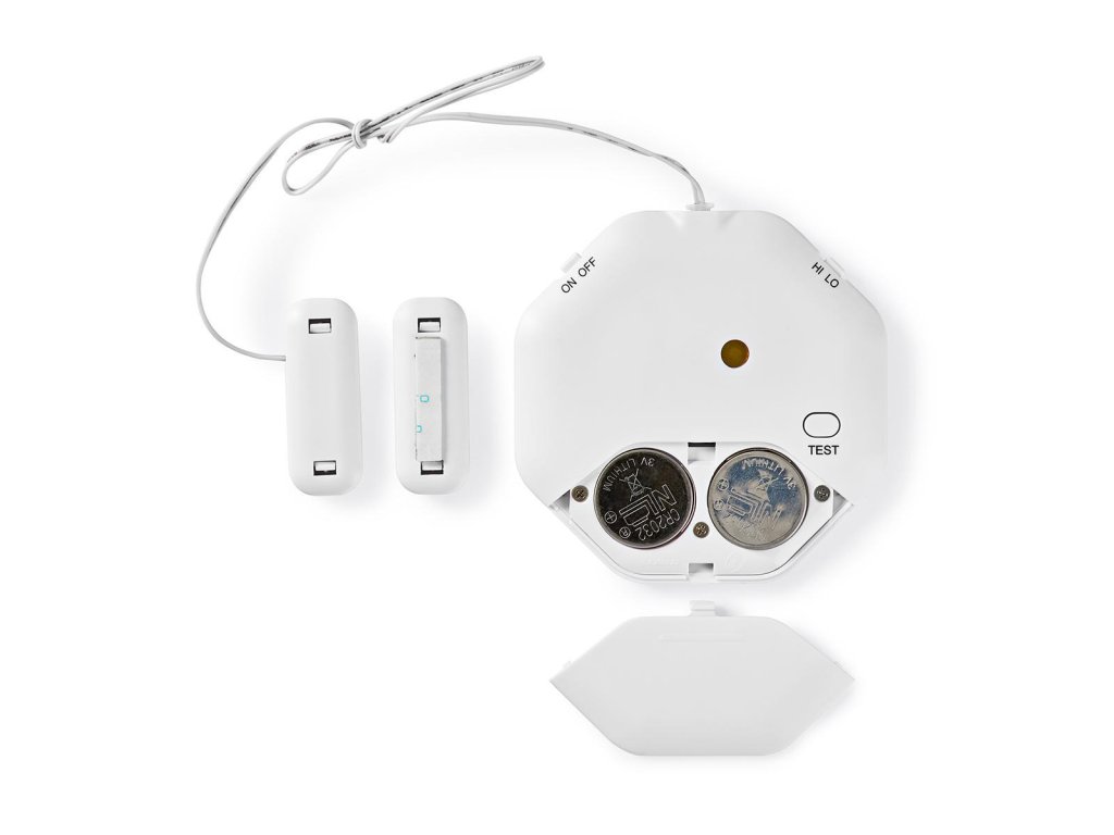 Ultratenký okenní alarm Nedis® slouží ke spuštění poplašného alarmu, který se aktivuje při rozbití okenního či dveřního skla nebo při otevření dveří /okna. Díky jednoduchému postrannímu vypínači lze zařízení podle potřeby zapnout či vypnout. Tenký profil jej předurčuje ideálně k montáži na okno či dveře. Alarm je napájen 2 x CR2032 bateriemi (součástí balení), přičemž průměrná životnost baterie je za běžného používání jeden rok. Alarm je vybaven světelnou indikací téměř prázdné baterie. Stav baterie zkontrolujete stisknutím tlačítka „Test“ na čelní straně zařízení. Jednotku alarmu připevněte pomocí oboustranné lepicí pásky (součástí balení). Alarm a magnetický otřesový snímač stačí přilepit na dveře či okno a jste hotovi.