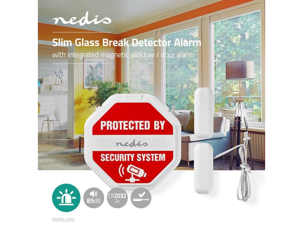 Nedis ALRMGBD20WT okenní alarm s čidlem tříštění skla