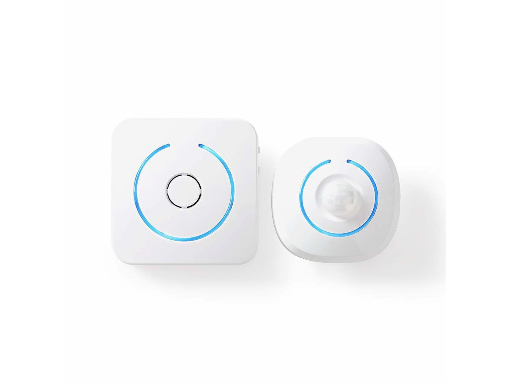 Nedis ALRMMW20WT detektor pohybu s bezdrátovým alarmem, 8 vyzváněcích tónů, světelná signalizace