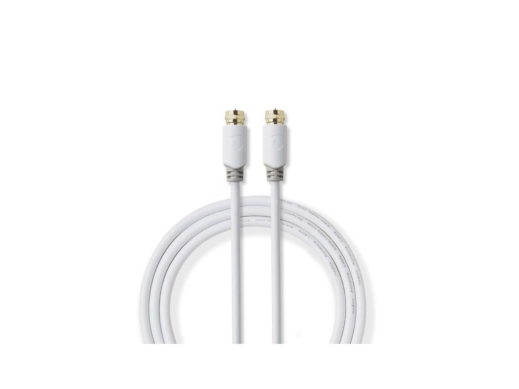 Značkový Nedis® propojovací anténní kabel se zlacenými F konektory je vhodný např. k připojení satelitní nebo DVB-T2 antény, přijímači nebo televizoru. Délka 5 m, bílá barva.