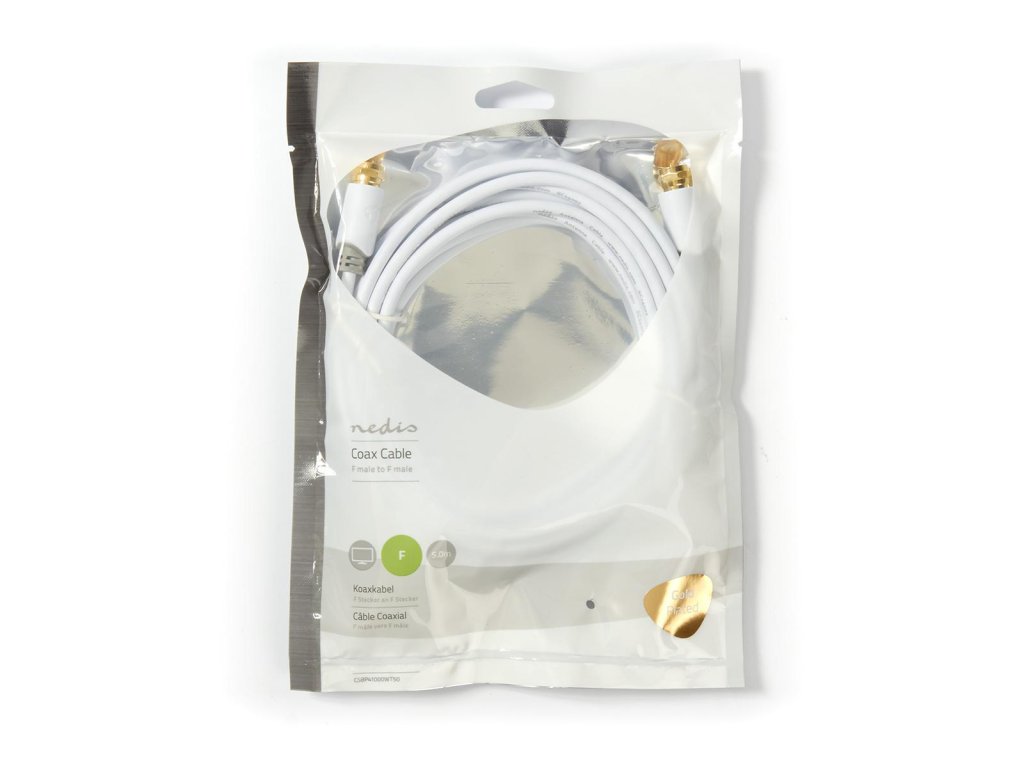 Nedis CSBP41000WT50 anténní kabel zástrčka F - zástrčka F, 5 m, bílá
