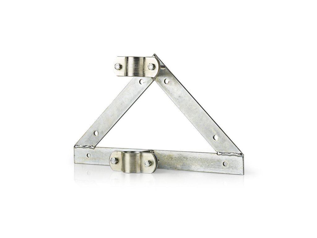 Nástěnný držák stožáru z pozinkované oceli vhodný k důkladnému upevnění parabolické nebo běžné antény do štítu domu. Při použití tohoto stožárového držáku antény již nebudete muset instalovat stožár skrz střechu domu.