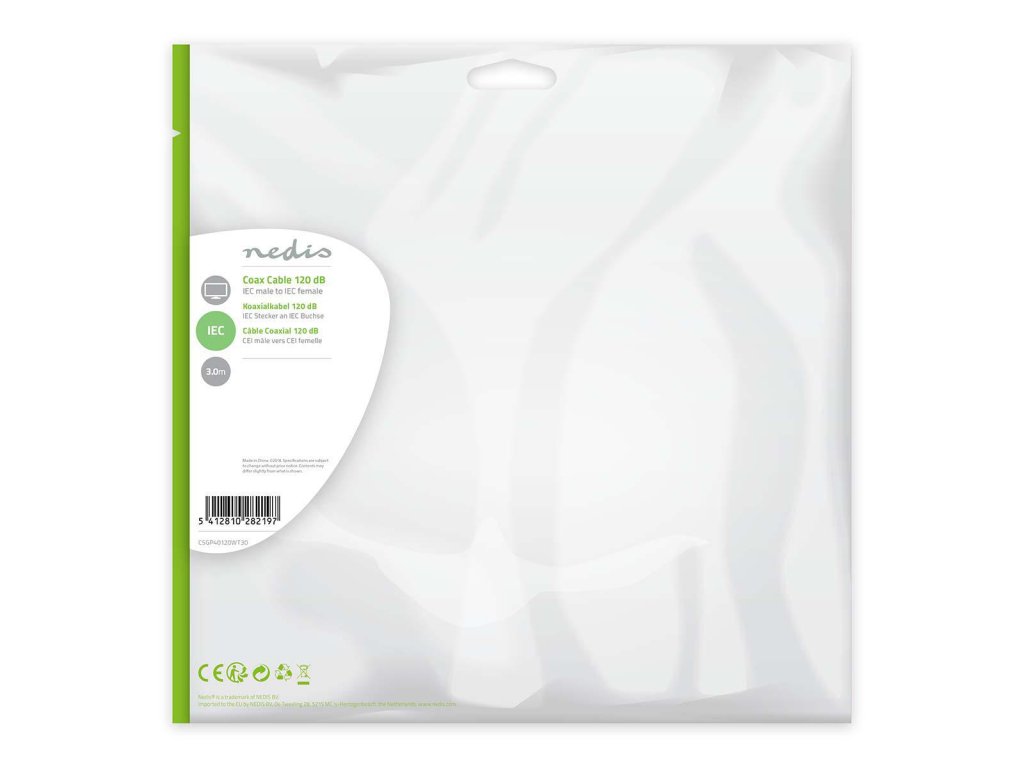 Kvalitní 120 dB koaxiální kabel Nedis® je vhodný pro zapojení televizoru nebo set-top boxu do anténní koaxiální zásuvky ve zdi. Kabel se čtyřnásobným stíněním, feritovými interferenčními filtry a měděnými vodiči je vhodný především pro nejmodernější smart TV. Osazen konektory úhlová zástrčka IEC Coax - úhlová zásuvka IEC Coax. Délka 3 m.
