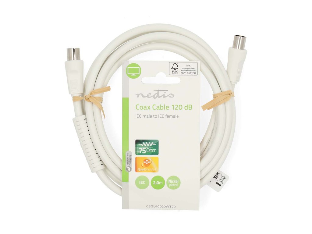 Nedis anténní kabel 120 dB zástrčka Coax - zásuvka Coax, 2 m, bílá (CSGL40020WT20)