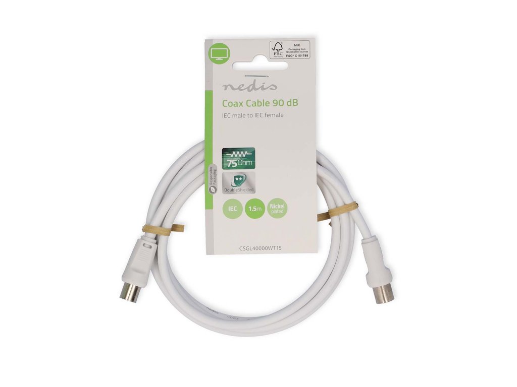 Nedis anténní kabel 90 dB zástrčka Coax - zástrčka Coax, 1.5 m, bílá (CSGL40000WT15)