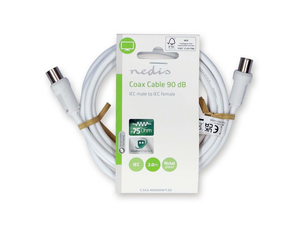 Nedis anténní kabel 90 dB zástrčka Coax - zástrčka Coax, 2 m, bílá (CSGL40000WT20)