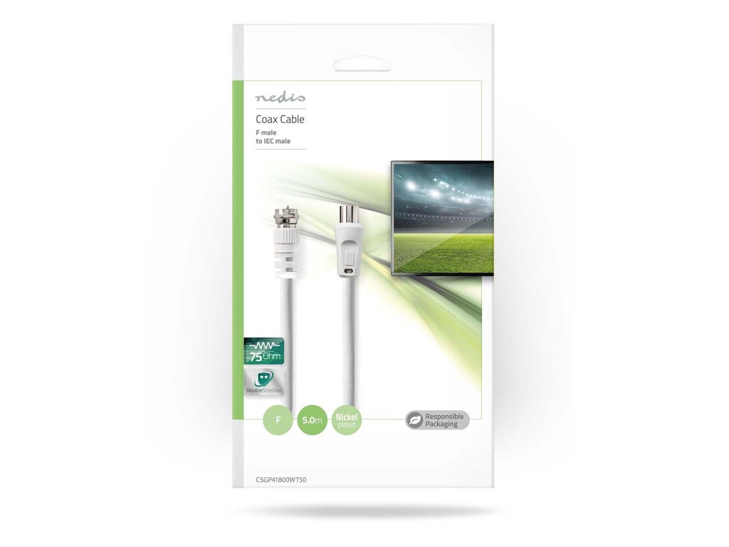 Nedis anténní kabel zástrčka F - zástrčka Coax, 5 m, bílá (CSGP41800WT50)
