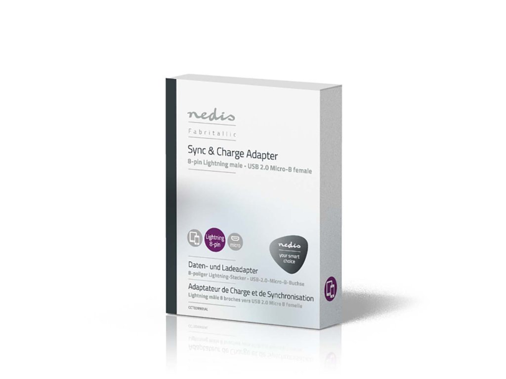 Značkový Nedis® synchronizační a nabíjecí adaptér Apple Lightning 8-pin na USB 2.0 Micro-B umožňuje připojení zařízení Apple iPhone, iPad nebo iPod k počítači PC pro synchronizaci a nabíjení.
