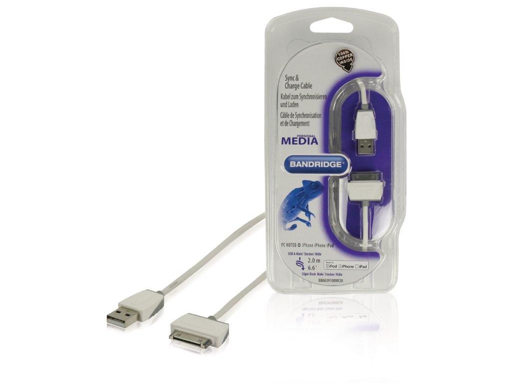 Bandridge synchronizační a nabíjecí kabel 2 m s konektory zástrčka Apple 30-pin - zástrčka USB 2.0 typ A vhodný pro iPod®/iPhone®/iPad®.
