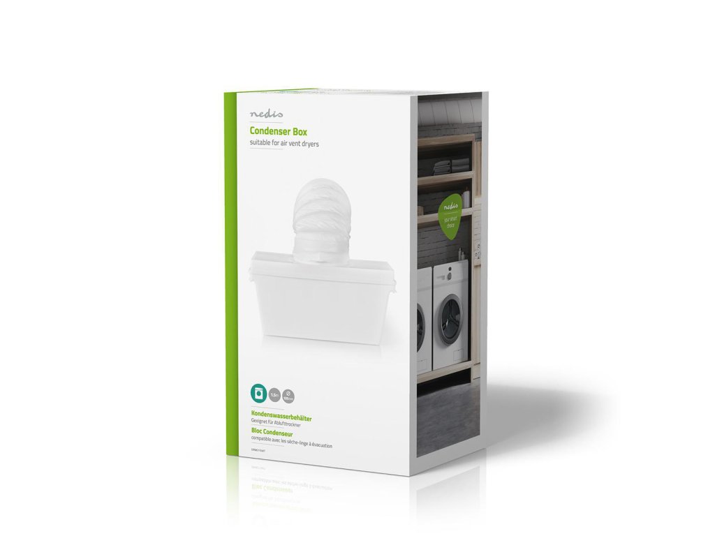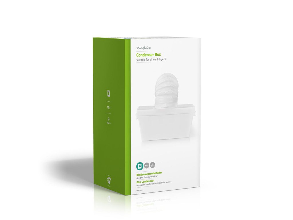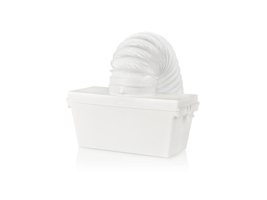 Kondenzační box s hadicí je určen pro připojení k odvětrávací (ventilační) sušičce prádla. Díky boxu Nedis® DRMO110WT nebude muset instalovat ventilační hadici vně místnosti. Délka hadice 1.5 m, průměr 105 mm.