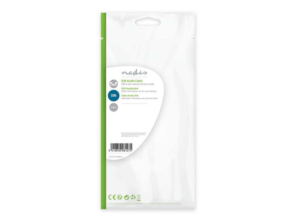Nedis® propojovací audio kabel s konektory 5-pinový DIN zástrčka na Jack 3.5 mm zástrčka. Vhodný např. pro připojení staršího kazetového/CD přehrávače nebo gramofonu, zesilovači atd. Délka 2 m.