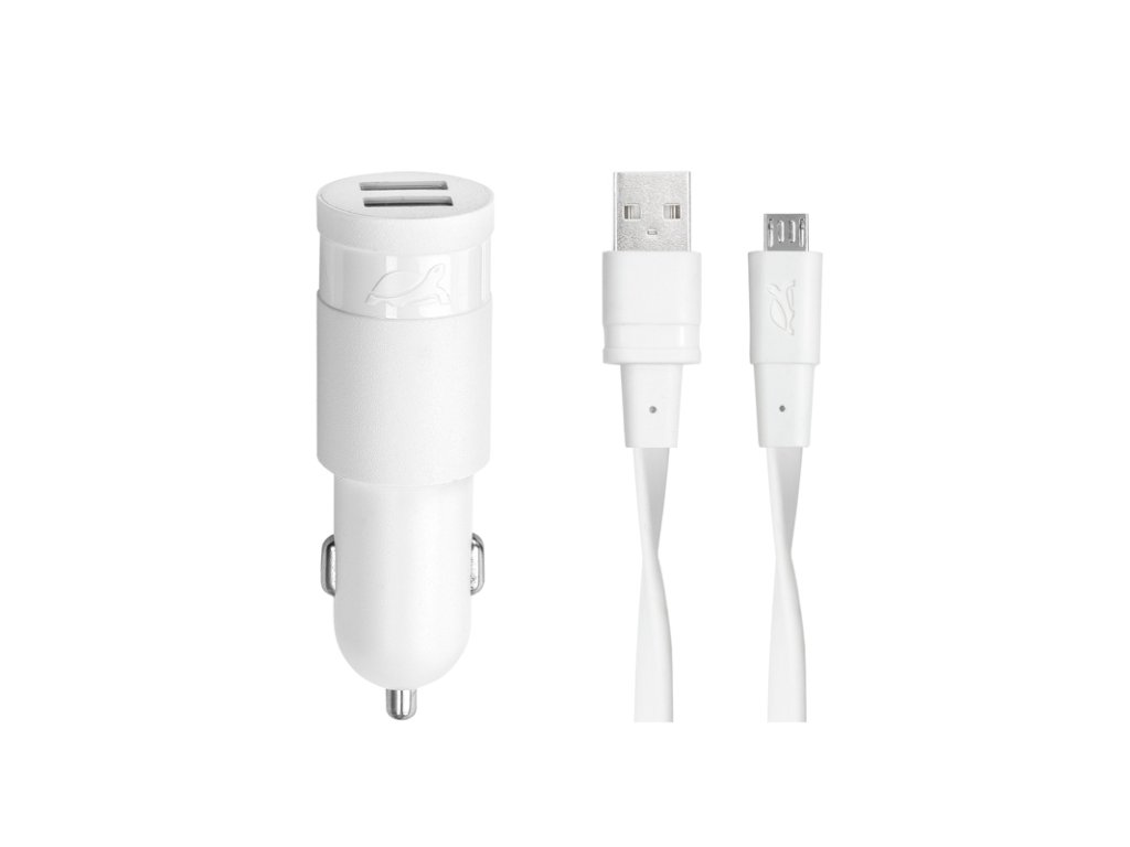Riva Power 4222 WD1 duální automobilový adaptér 2,4A/2xUSB, bílá + micro USB kabel