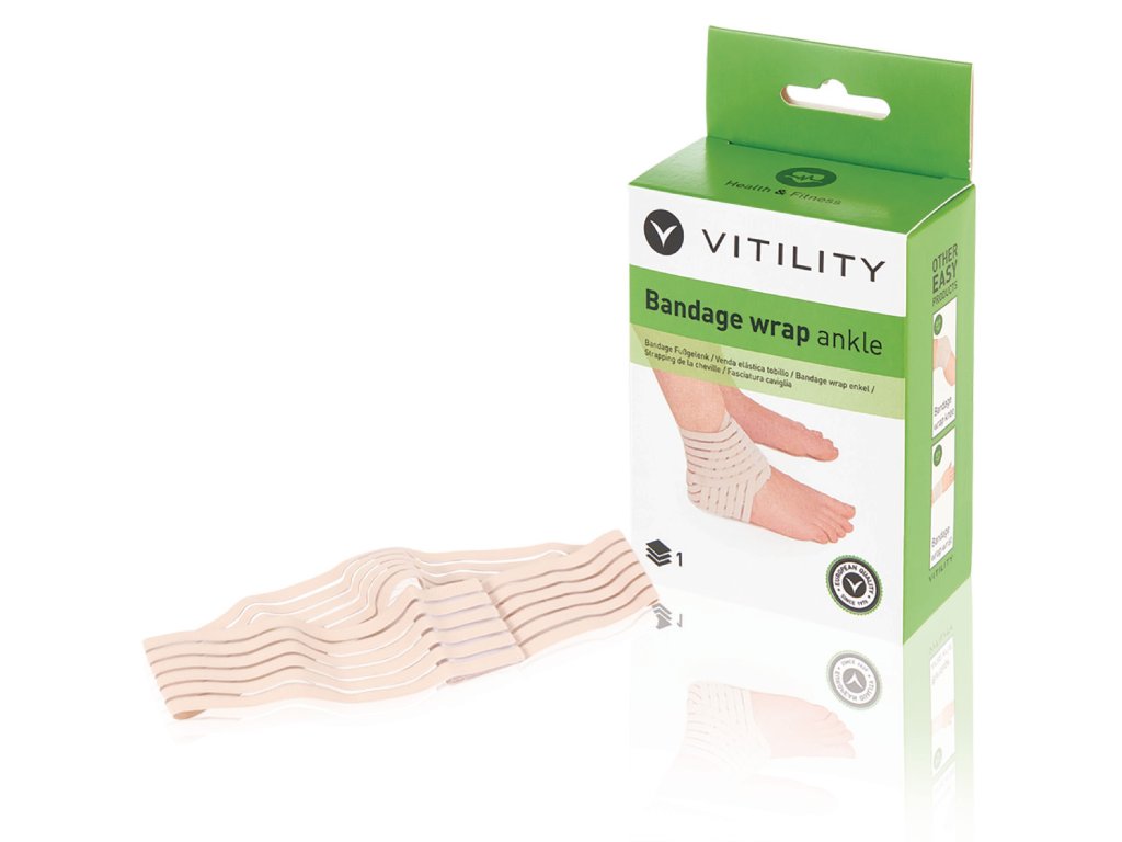 Elastická bandáž na kotník Vitility je vyrobena z vysoce kvalitního elastického materiálu. Bandáž je vhodná pro fixaci kotníku při cvičení, jako prevence před úrazem, při potížích s artritidou, nebo pro fixaci kloubu po lehčím podvrtnutí.