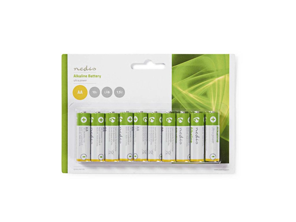 Alkalická baterie Nedis® Ultra Power typ AA 1.5 V. Vhodná pro každodenní použití v zařízeních jako např. přenosná rádia, mp3 přehrávače, přenosné hry, svítilny, počítačové myši atd. Balení 10 ks v blistru.