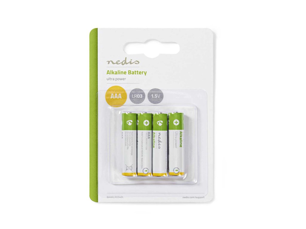 Alkalická baterie Nedis® Ultra Power typ AAA 1.5 V. Vhodná pro každodenní použití v zařízeních jako např. přenosná rádia, mp3 přehrávače, přenosné hry, svítilny, počítačové myši atd. Balení 4 ks v blistru.