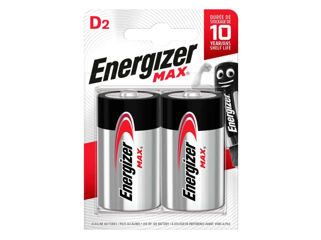 Kvalitní extra výkonné alkalické baterie Energizer Max, odolné proti nežádoucímu vytečení elektrolytu až 2 roky po úplném vybití. Vhodné pro zařízení s každodenním použitím, jako např. přenosná rádia, svítilny, hračky atd. Vydrží výrazně déle než zinkouhlíkové i běžné alkalické baterie. Skladovatelné 10 let. Balení 2 ks v blistru.
