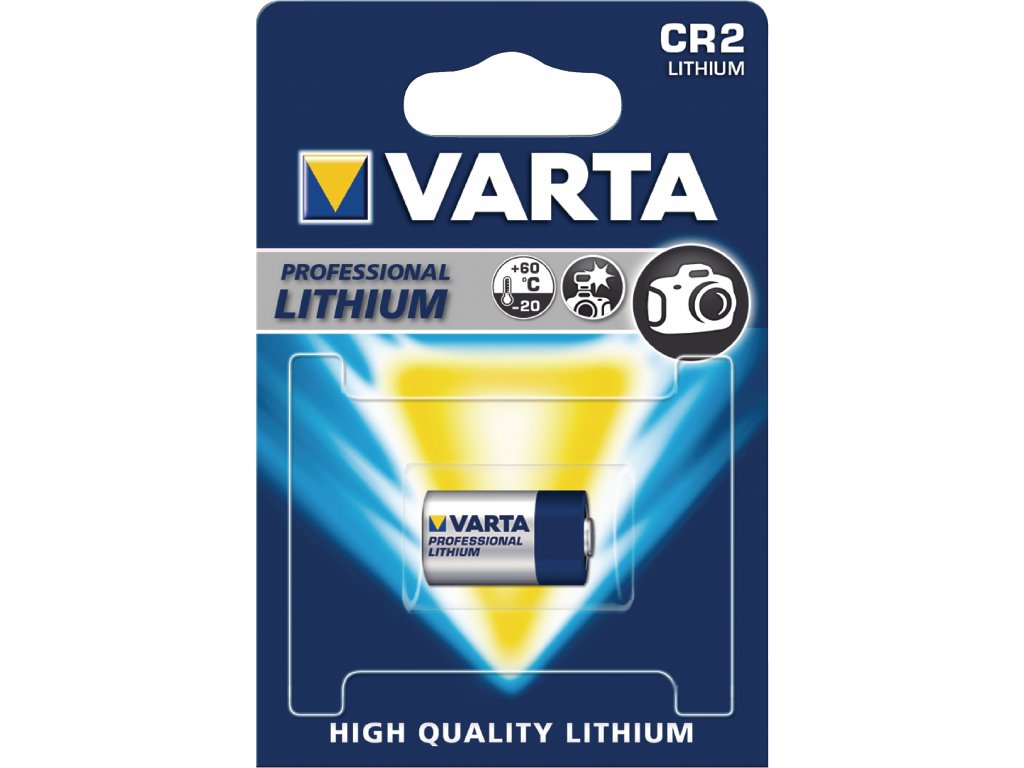 Lithiová baterie Varta typ CR2 3 V. Baterie CR2 jsou vhodné pro digitální fotoaparáty a blesky.