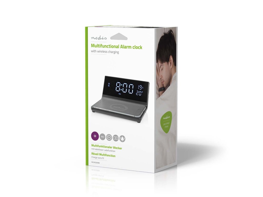 Vy i váš smartphone se každé ráno probudíte nabití energií díky třem funkcím tohoto Nedis 3 v 1 budíku: bezdrátové nabíjení Qi, LED hodiny a funkce dvou časů buzení.