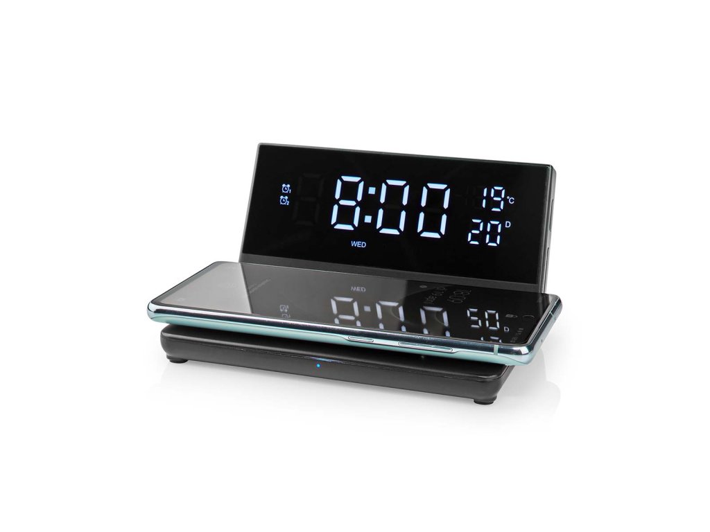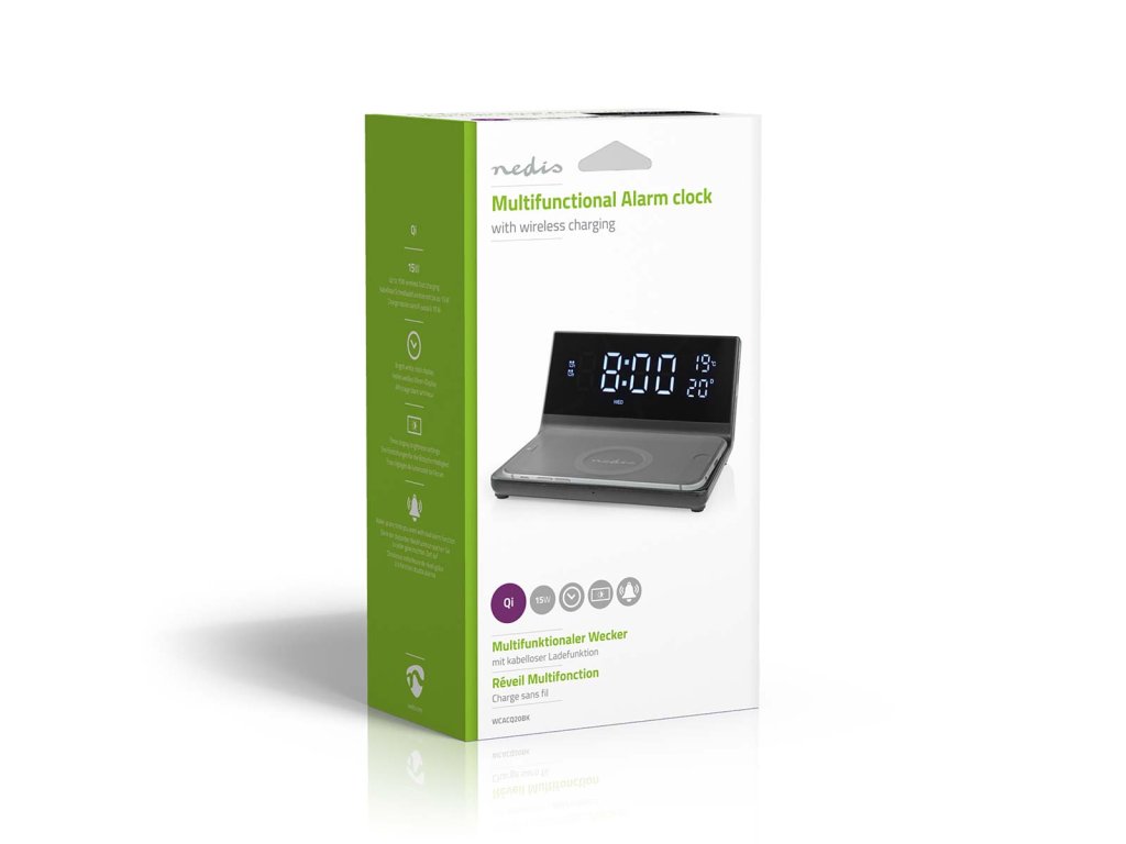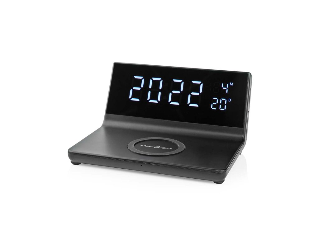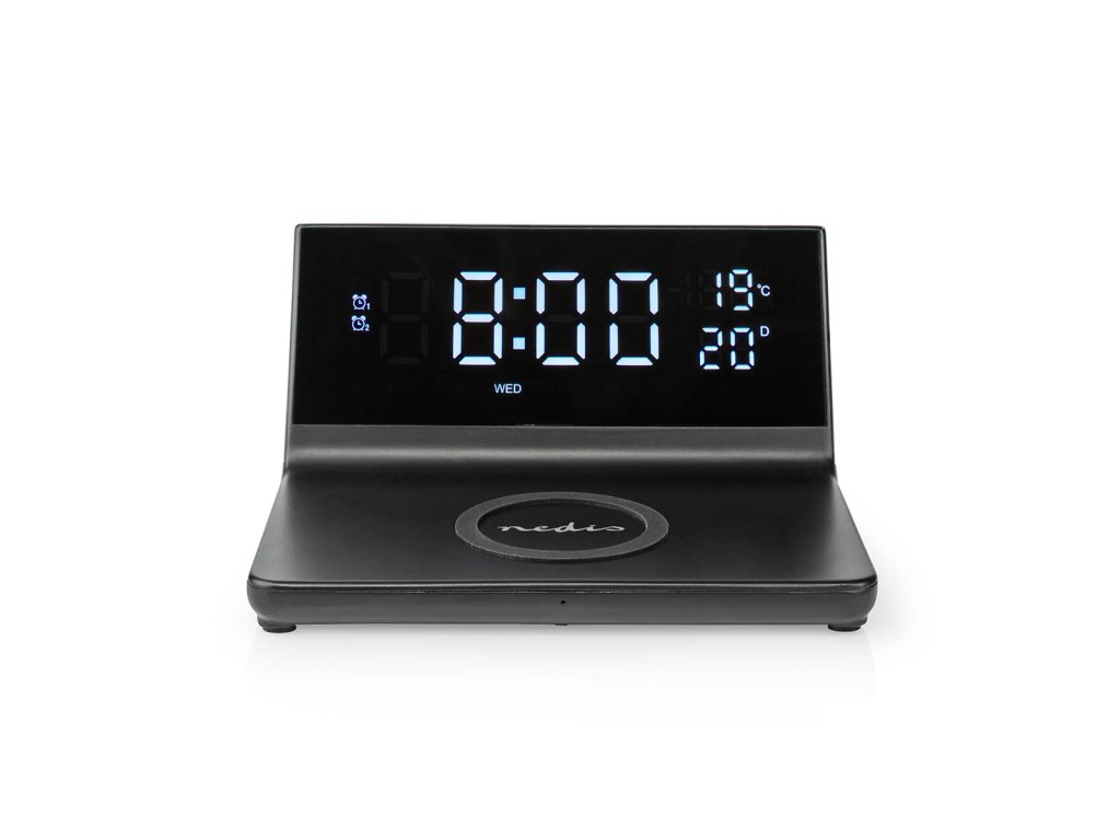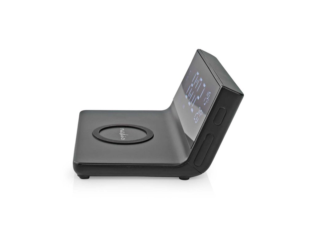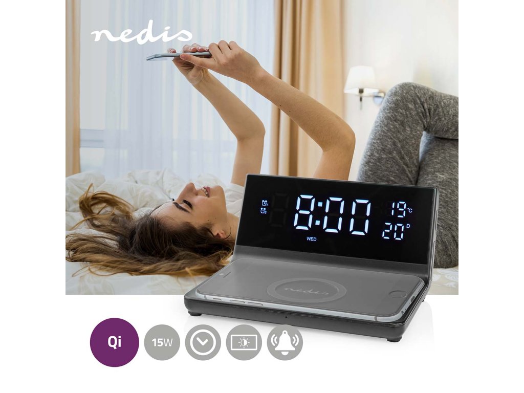 Nedis WCACQ20BK bezdrátová nabíječka mobilu, Qi certifikace, budík, černá