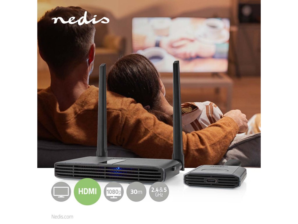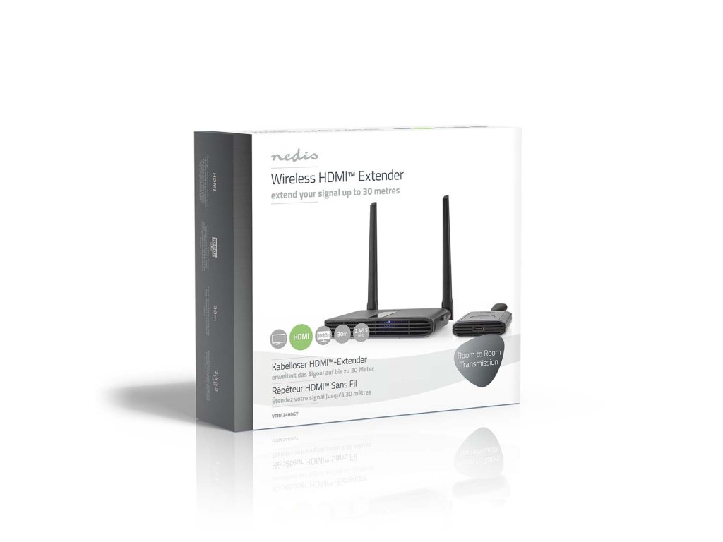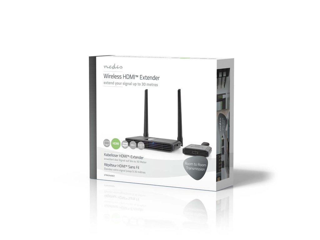 Bezdrátová souprava Nedis® VTRA3460GY zajišťuje bezdrátový přenos signálu HDMI™ z připojeného audio nebo video zařízení na televizor nebo projektor na vzdálenost až 30 metrů. Signál HDMI™ prochází dokonce i zdmi a stropy. Ideální, pokud není možné připojení přes kabel nebo pokud připojení přes kabel nechcete domem vést. Díky bezdrátovému extendéru můžete mít televizní signál kdekoli v domě, aniž byste na tomto místě museli mít připojení k televizoru.