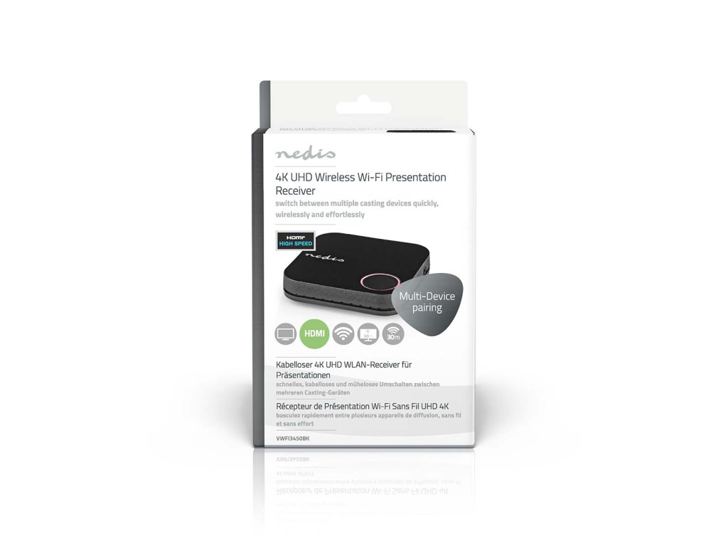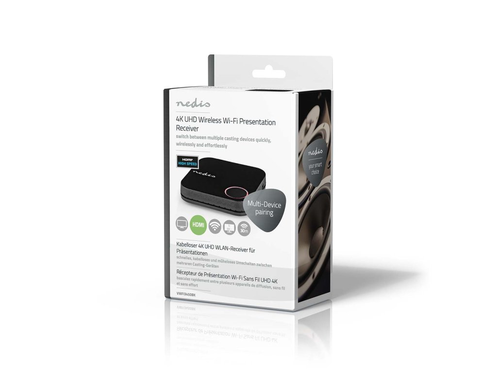 Tento profesionální Nedis přenosný bezdrátový Wi-Fi prezentační systém podporuje bezdrátový přenos HDMI™ výstupu v rozlišení až 4K. Umožňuje přepínat mezi vícero vysílacími zařízeními rychle, bezdrátově a bez námahy. Díky tomu je skvělým společníkem na schůzky s vlastními zařízeními účastníků.
