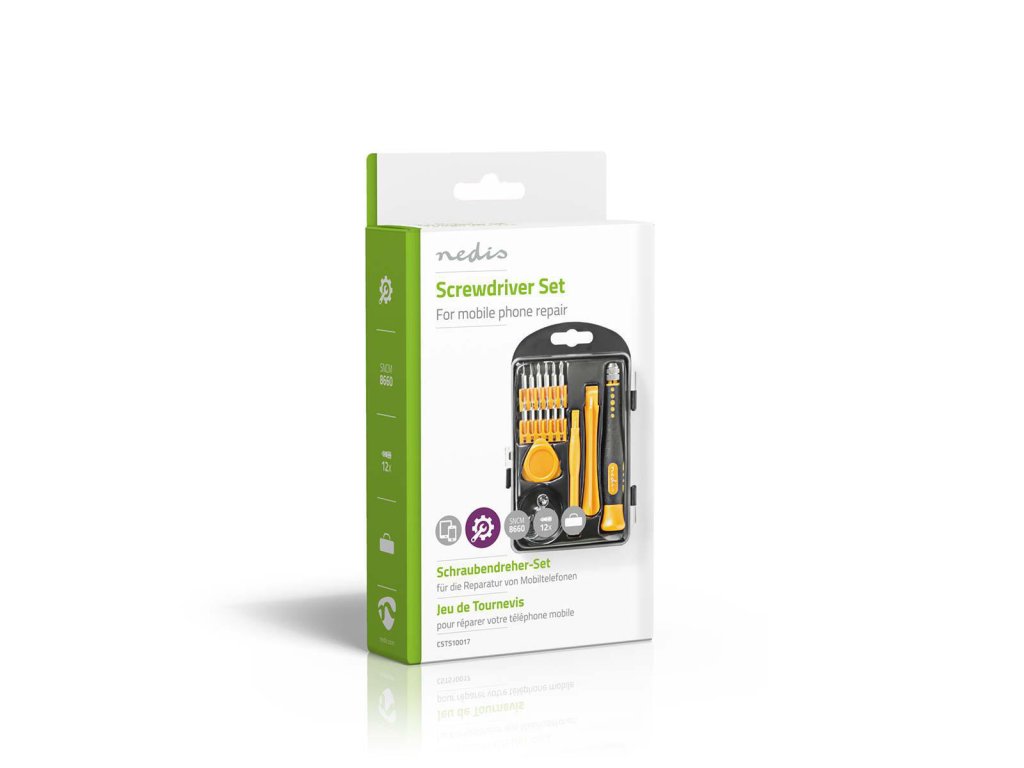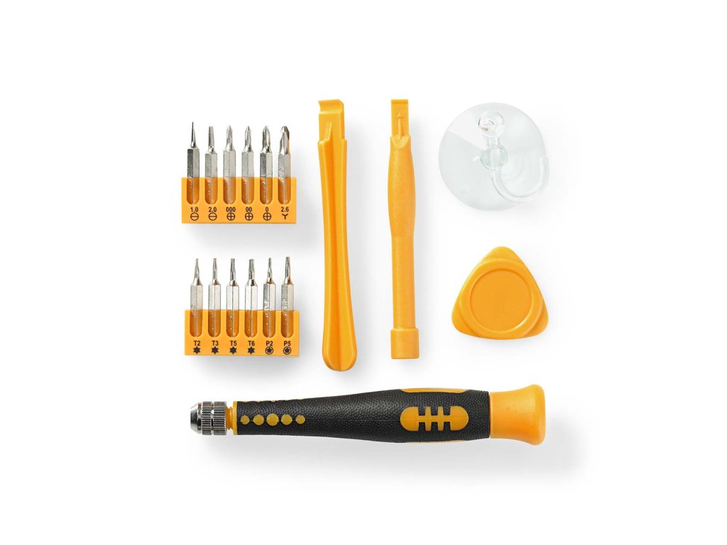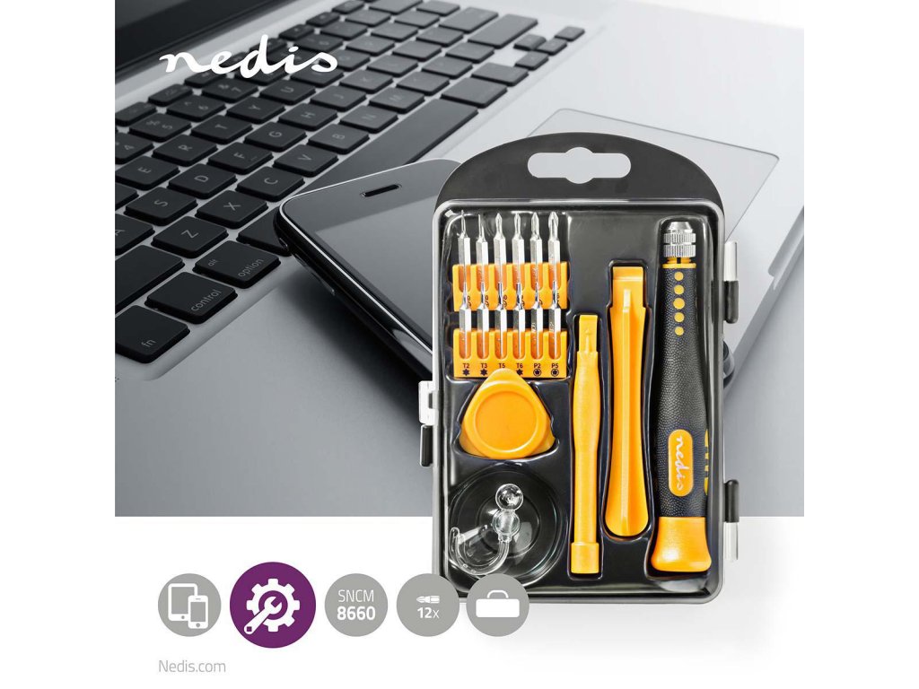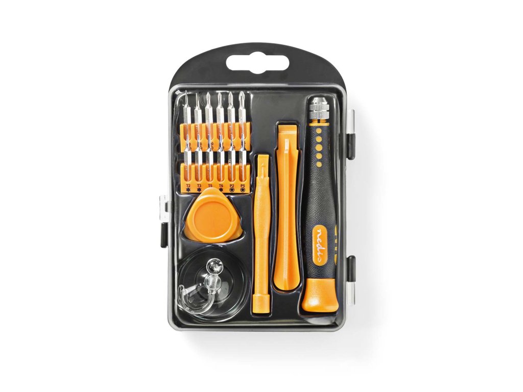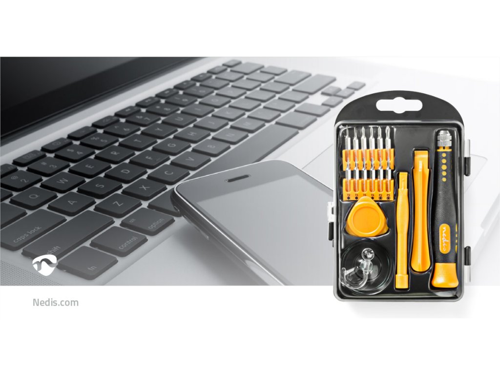 Nedis® sada nástrojů pro opravy smartphonů, počítačů a dalších elektronických zařízení. Sada obsahuje celkem 17 ks nástrojů pro opravy a sestavování zařízení.