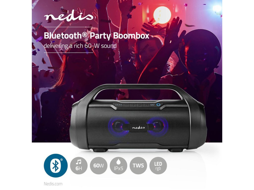 Nedis SPBB310BK Bluetooth párty přehrávač 60W, AUX, USB, micro SD, IPX5, 6 hod. přehrávání