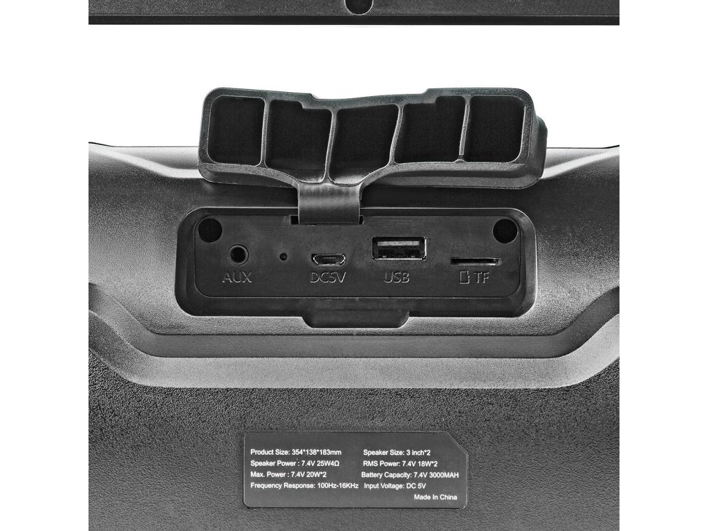 • Špičkový design - s vestavěnou rukojetí a módními barevnými LED světly na reproduktorech