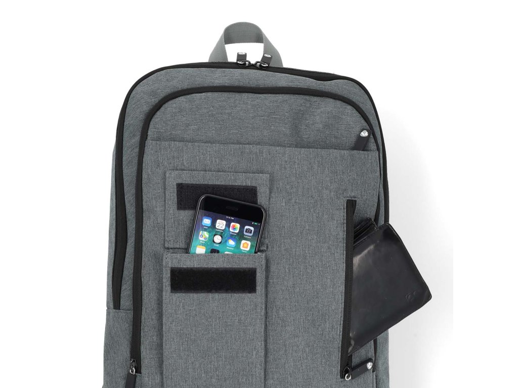 • Rychle přístupná přední kapsa na peněženku nebo pera