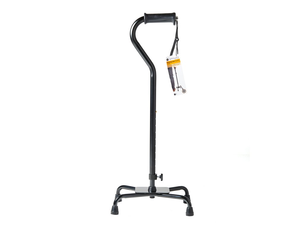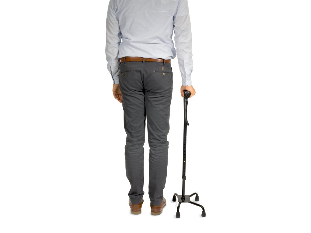 Vycházková hůl má čtyři malé nožičky, které poskytují širokou podpůrnou plochu, což vám poskytuje extra stabilitu. Ergonomická rukojeť dobře sedí v ruce a pomáhá absorbovat nárazy. Vycházková hůl je výškově nastavitelná.