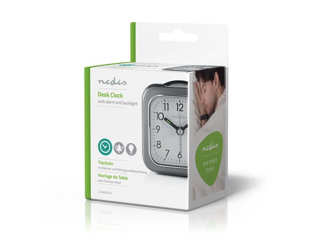 Nedis CLDK005GY stolní ručičkový budík, čtvercový šedý