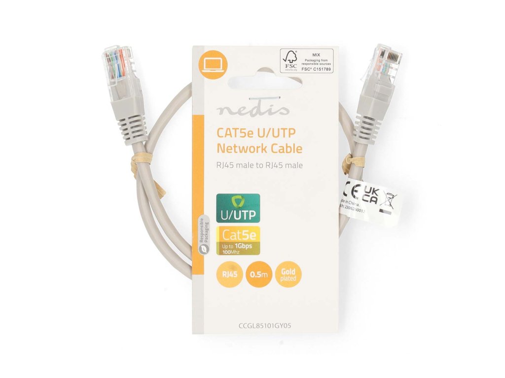 Nedis nestíněný síťový kabel UTP CAT5e, zástrčka RJ45 - zástrčka RJ45, 0.5 m, šedá (CCGL85101GY05)