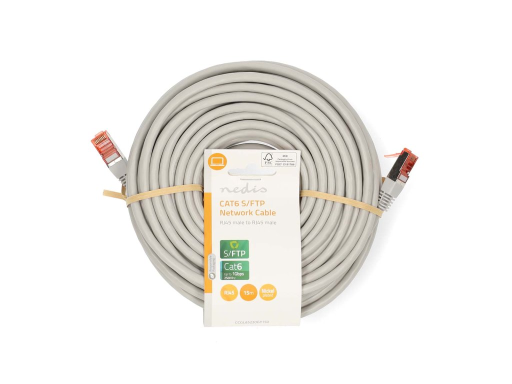 Značkový Nedis® síťový kabel SF/UTP CAT6, zástrčka RJ45 - zástrčka RJ45 pro síť Ethernet s rychlostí 10, 100 a 1000Mb/s. Délka 15 m.