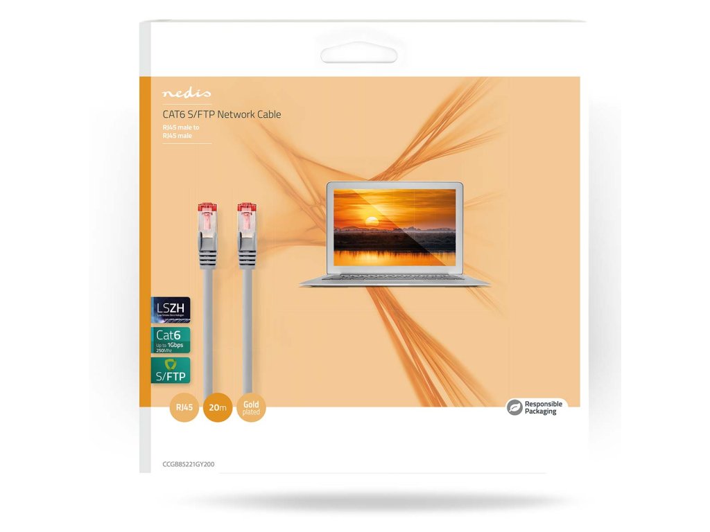 Značkový Nedis® síťový kabel S/FTP CAT6, zástrčka RJ45 - zástrčka RJ45 pro síť Ethernet s rychlostí 1 000 Mb/s. Délka 20 m.