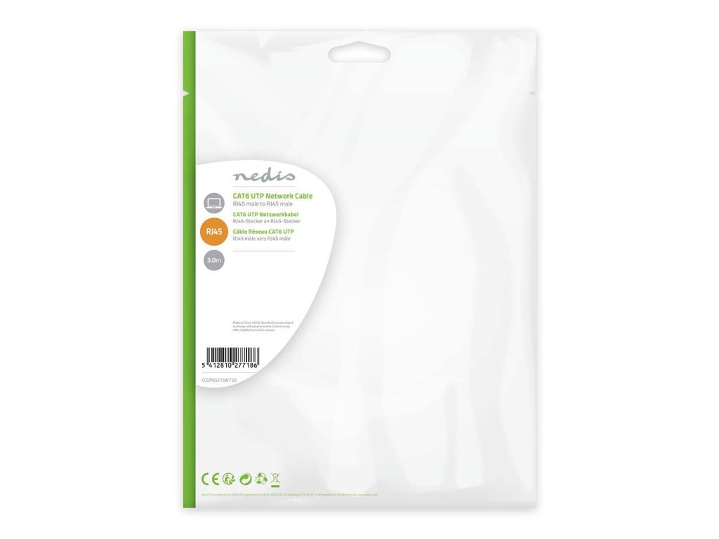 Nedis plochý síťový kabel UTP CAT6, zástrčka RJ45 - zástrčka RJ45, 3 m, bílá (CCGP85215WT30)