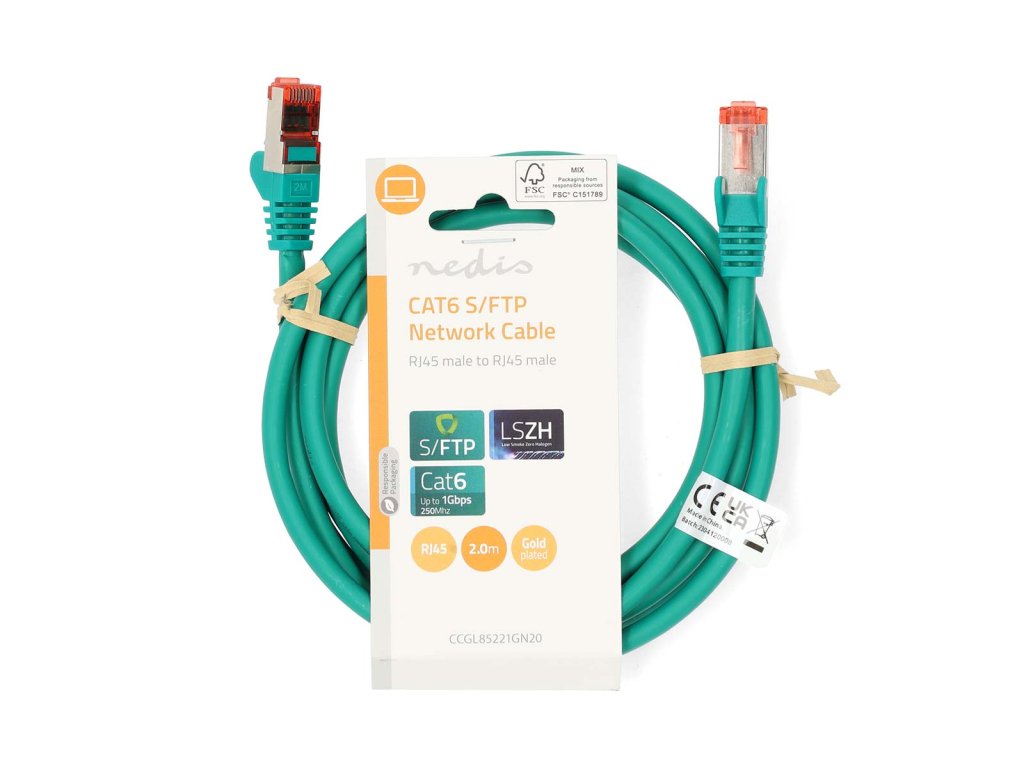 Nedis síťový kabel S/FTP CAT6, zástrčka RJ45 - zástrčka RJ45, 2 m, LSZH, zelená (CCGL85221GN20)