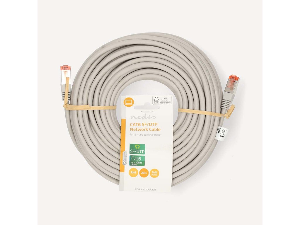 Nedis síťový kabel SF/UTP CAT6, zástrčka RJ45 - zástrčka RJ45, 20 m, šedá (CCGL85220GY200)