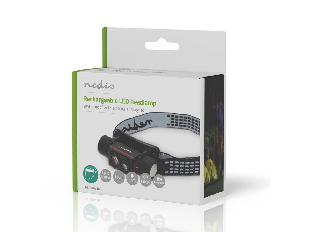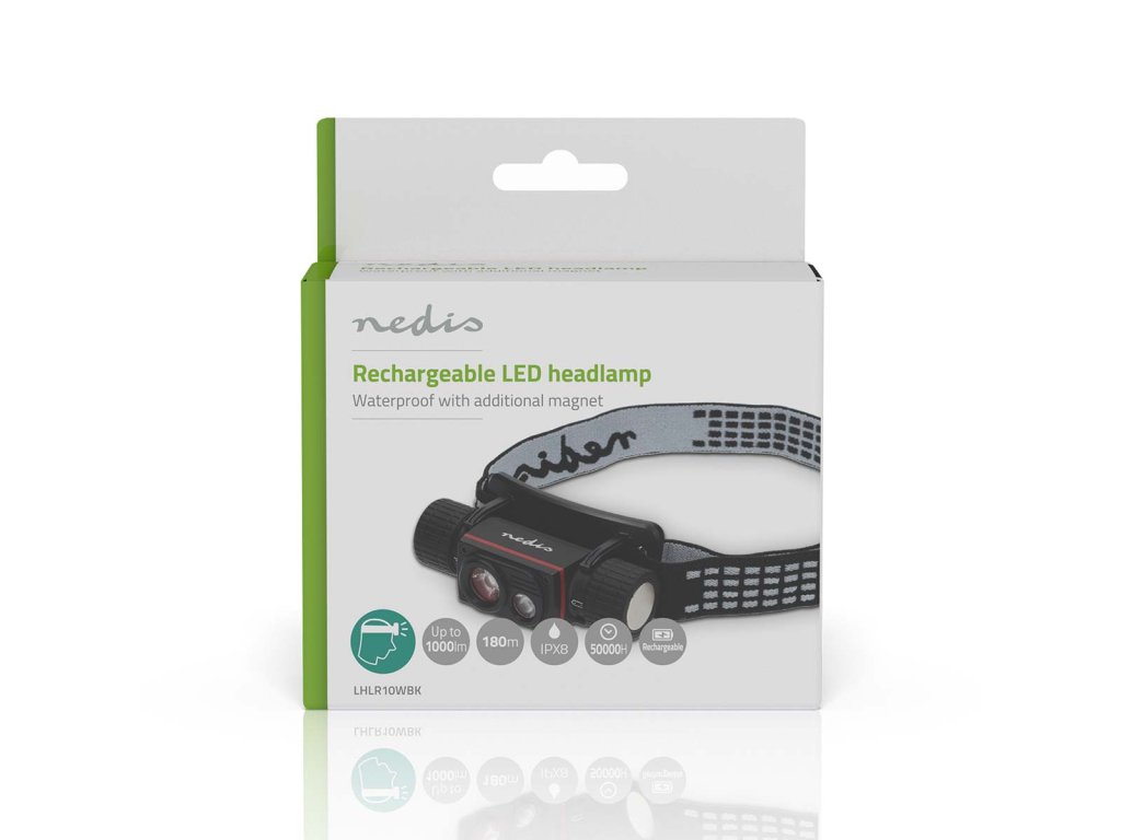 Nedis LHLR10WBK LED čelovka, 1000 lm, dosvit až 120 m, dobíjecí, USB-C
