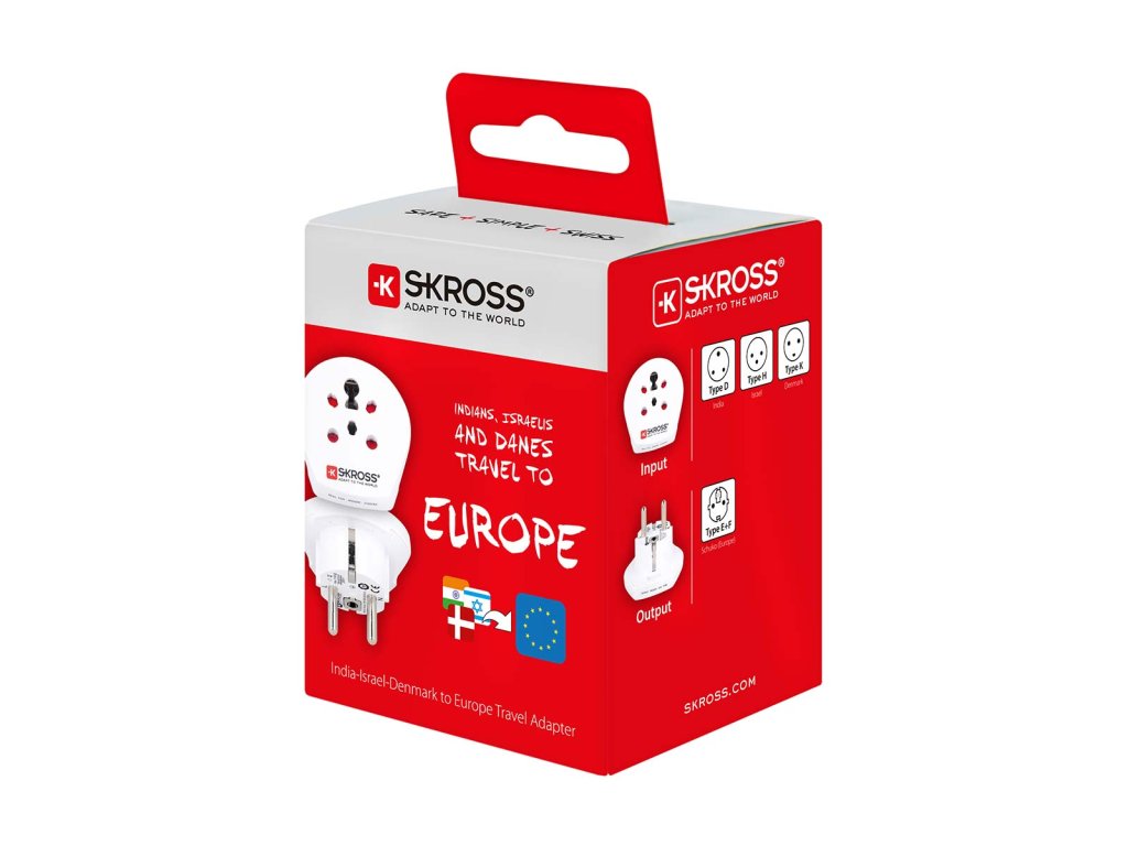 Adaptéry pro jednotlivé země značky SKROSS jsou ideálním řešením pro cestovatele, kteří dávají přednost konkrétní destinaci, i pro hotely a konferenční centra, která tak mohou svým mezinárodním hostům poskytnout možnost připojení svých přístrojů. S adaptérem Skross 1500217E lze používat přístroje se zástrčkami zemí Dánsko/Indie/Izrael ve více než 90 zemích Evropy a světa, které používají zásuvky standardu Schukko. Bezpečně podporuje i přístroje s vysokou spotřebou energie jako notebooky a fény.