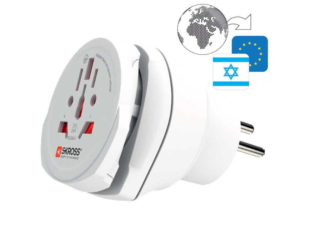 Kombinované adaptéry pro jednotlivé země značky SKROSS jsou ideálním řešením pro cestovatele z celého světa, kteří dávají přednost konkrétní destinaci, ale také pravidelně navštěvují Evropu (Zásuvka Typu F). Ideální pro hotely a konferenční centra, která chtějí poskytnout svým hostům možnost připojení jejich přístrojů během pobytu. S kombinovaným adaptérem svět - Izrael lze používat přístroje z více než 150 zemí v Izraeli a Evropě (Zásuvka Typu F). Bezpečně podporuje i přístroje s vysokou spotřebou energie jako notebooky a fény.