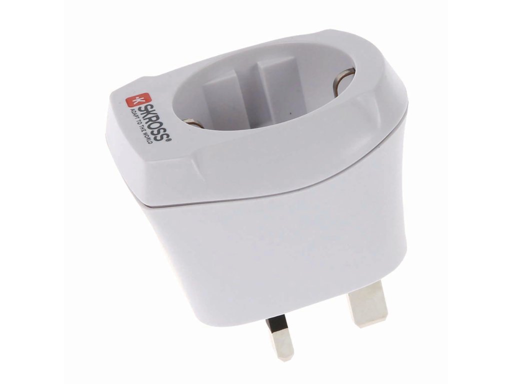 Cestovní napájecí adaptér Skross SKR1500230E vhodný pro země, které používají standardní britskou (UK) síťovou zásuvku. Adaptér můžete použít pro připojení všech 2 a 3-pólových přístrojů s se zástrčkami Schuko a Euro. Na cestách můžete do dostupné síťové zásuvky zapojit nejen kameru, ale také např. svou žehličku, elektrický zubní kartáček, holicí strojek nebo např. notebook.