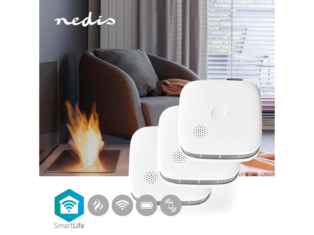 Nedis SmartLife chytrý detektor kouře Wi-Fi, životnost snímače 10 let, EN 14604 (WIFIDS20WT)