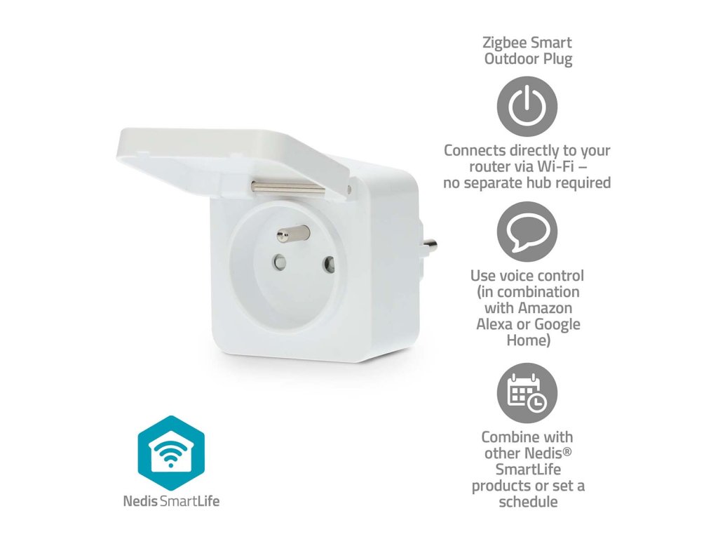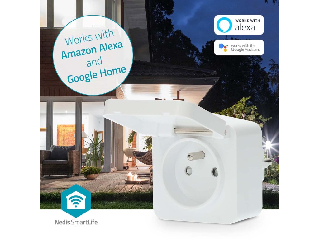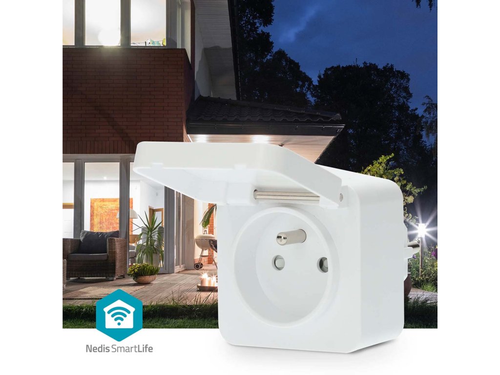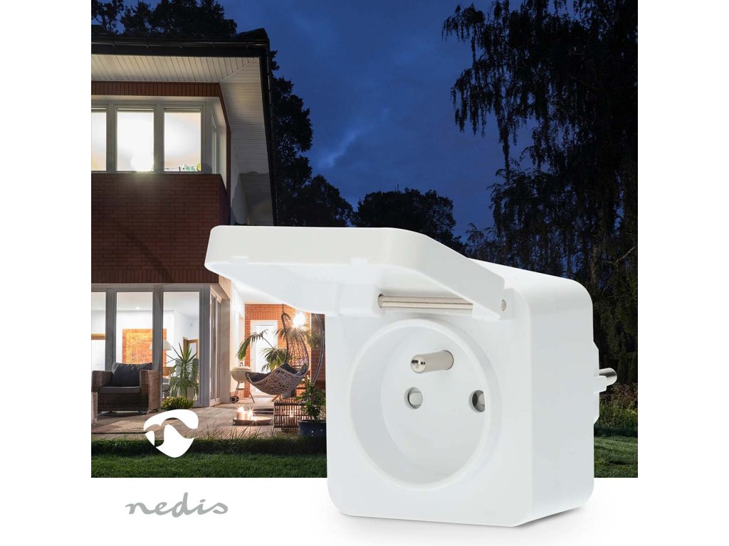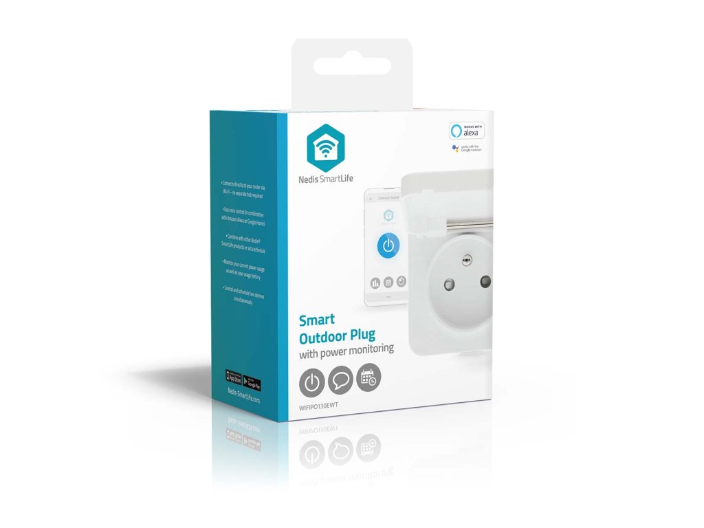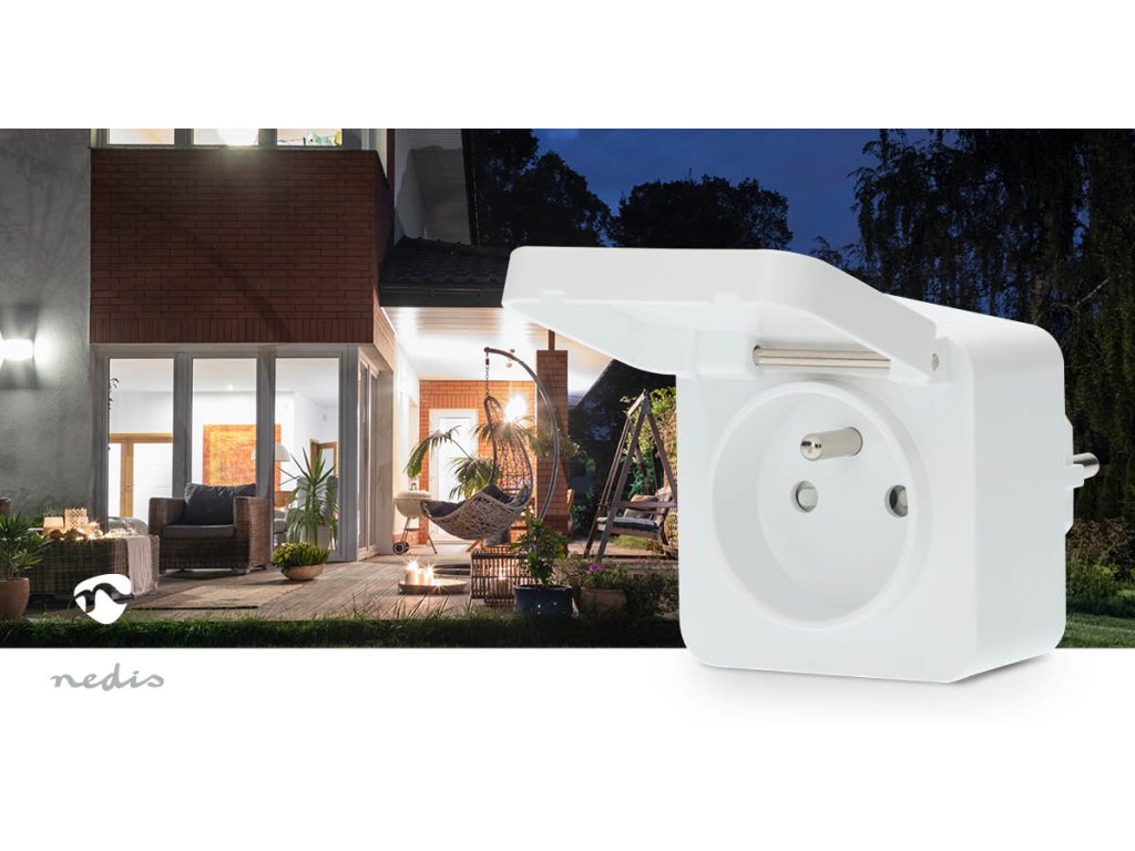 Nedis SmartLife chytrá venkovní zásuvka, monitor spotřeby, ochranný kolík, 16 A, IP44 (WIFIPO130EWT)
