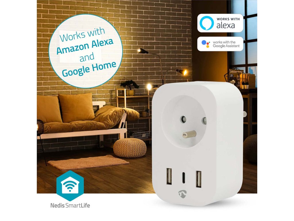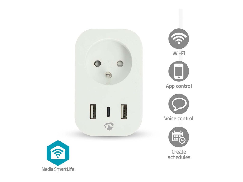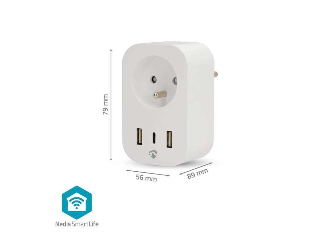 Nedis SmartLife chytrá zásuvka, monitor spotřeby, ochranný kolík, 16 A, 1x USB-C, 2x USB-A (WIFIP151EWT)