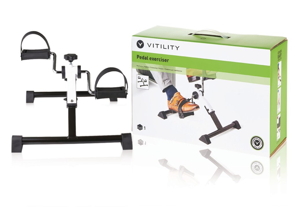 Pohybový trenažér - pedálový posilovač zlepšuje svalstvo, kondici, krevní oběh a koordinaci spodní části těla. Používejte pouze v sedě, například při sledování televize nebo při posezení na zahradě.