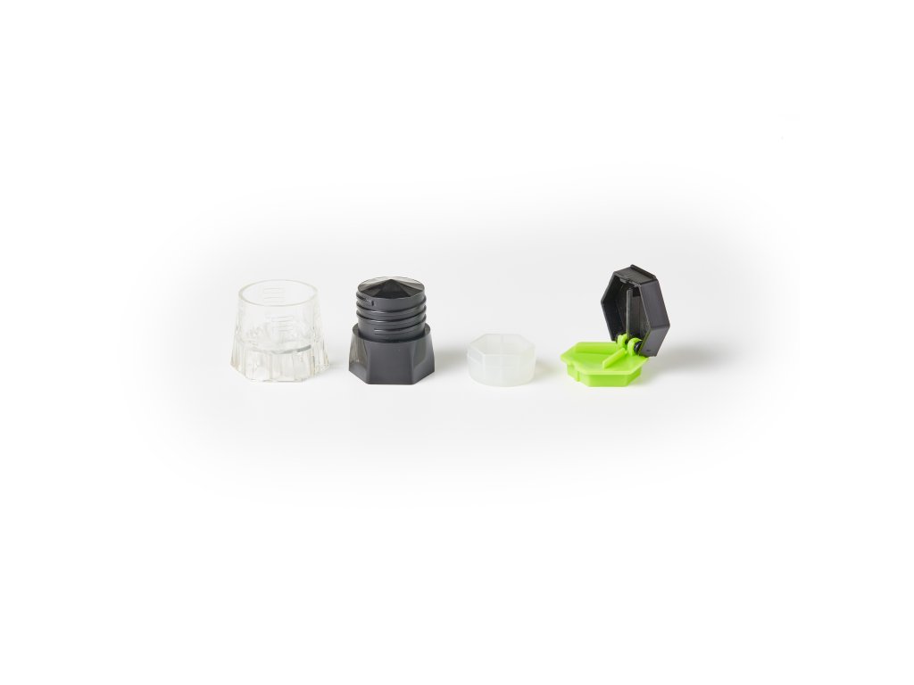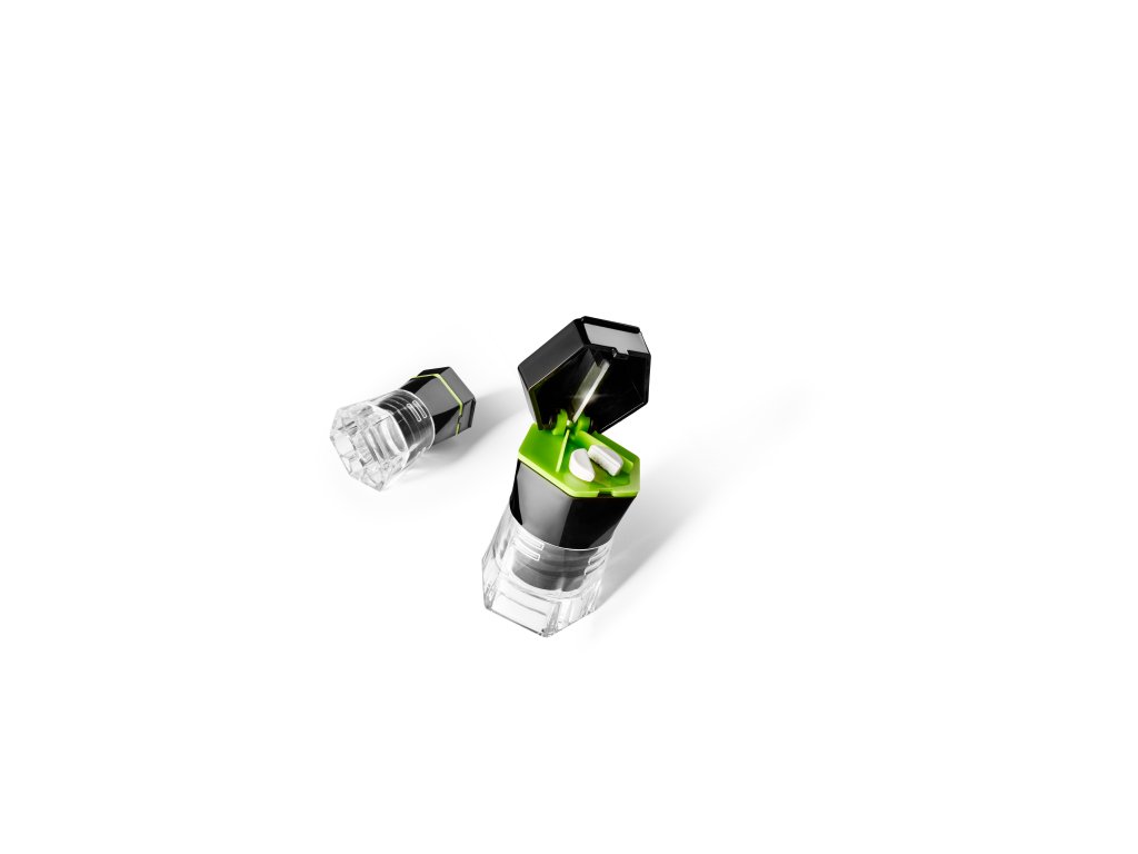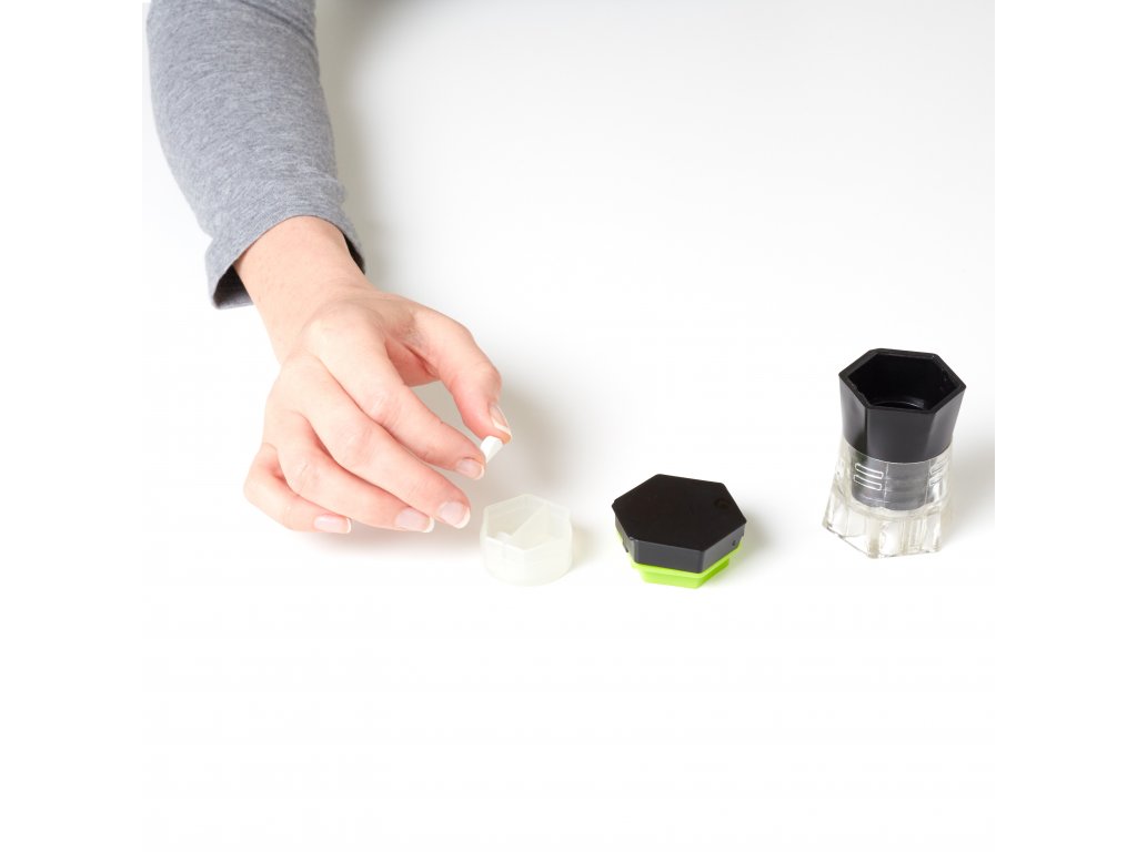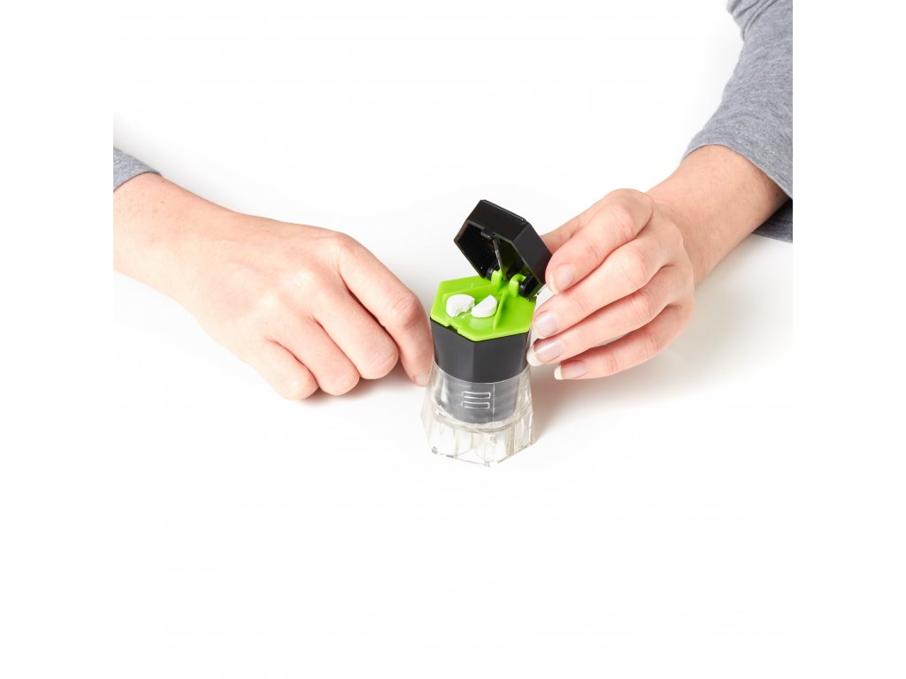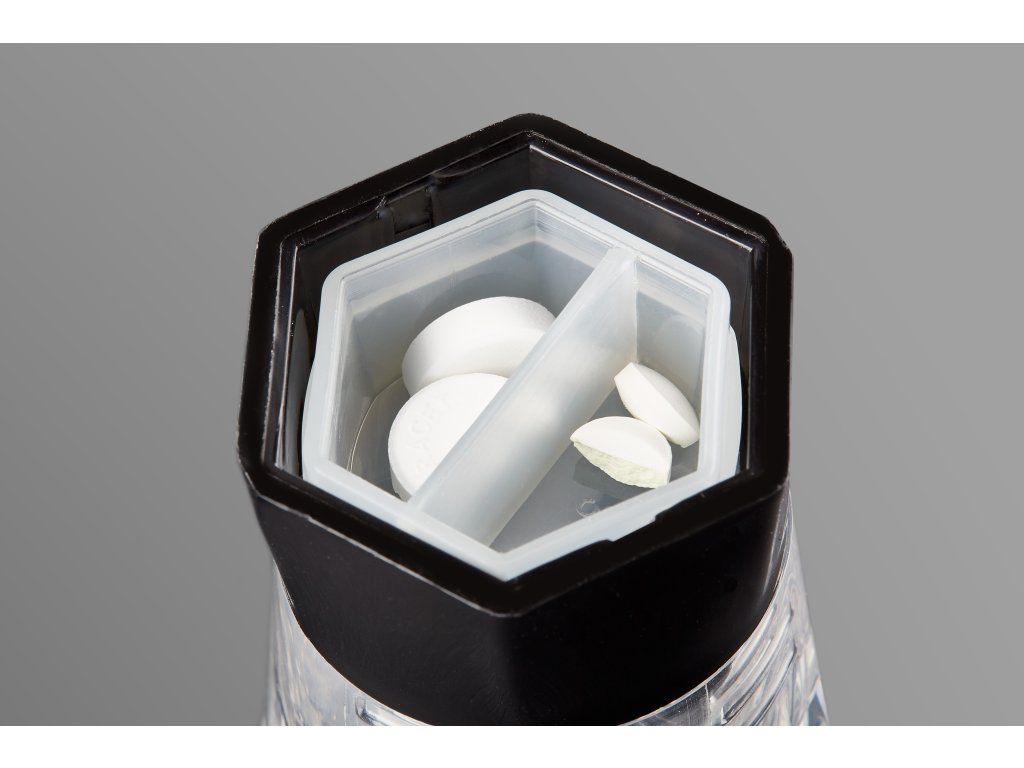 4. Drtič tablet - Ve spodní části můžete tablety rozdrtit. Přišroubováním horní části se tableta rozdrví v přihrádce.
