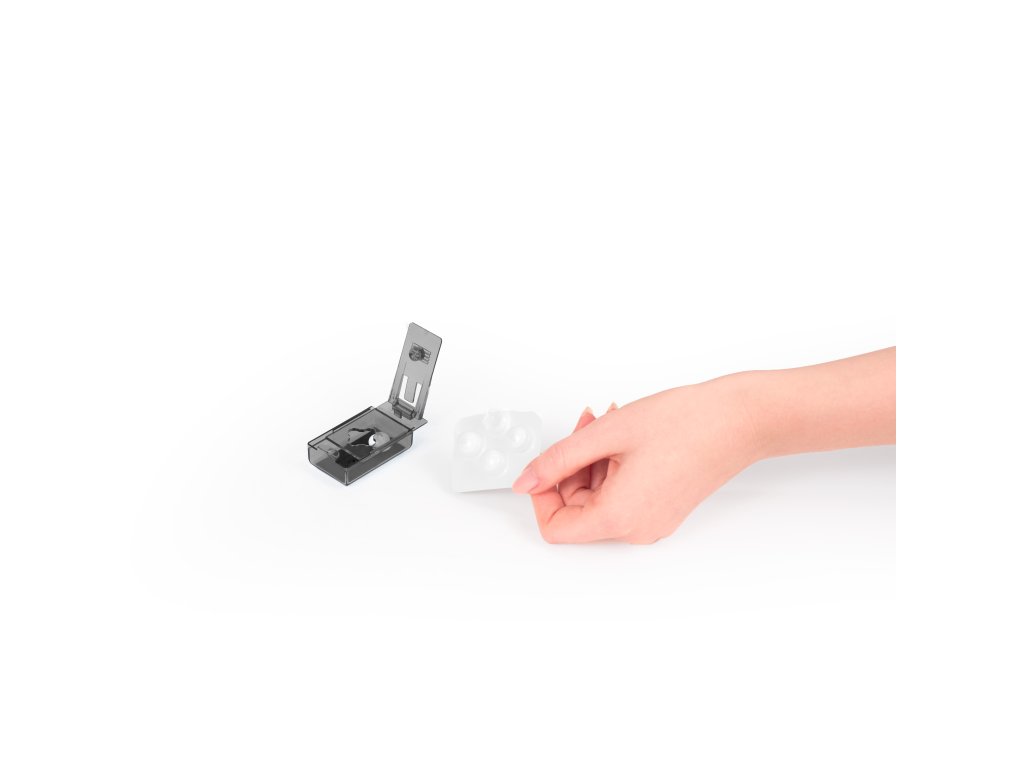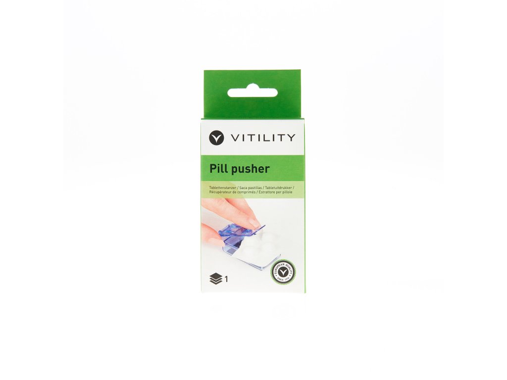 Vytlačovač pilulek je průhledná krabička s víkem. V krabičce je otvor, který vypadá trochu jako kříž. Díky tomuto tvaru otvoru můžete pomocí práškového lisu tlačit jak prášky, tak tobolky. Umístěte blistr s požadovanou pilulkou nebo tobolkou na otvor a sklopením víka zatlačíte pilulku nebo kapsli z blistru do krabičky. Poté sejměte víko a z krabičky můžete vyjmout pilulku nebo tobolku. Tímto způsobem můžete vytlačit pilulku nebo tobolku z blistru malou silou. Také se nemusíte bát, že léky vystřelí, když je vytlačíte z blistru.