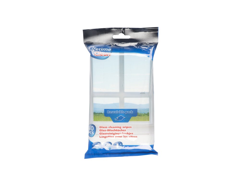 Vlhčené ubrousky Lifetime Clean k čištění oken, skel, zrcadel a skleněných povrchů.