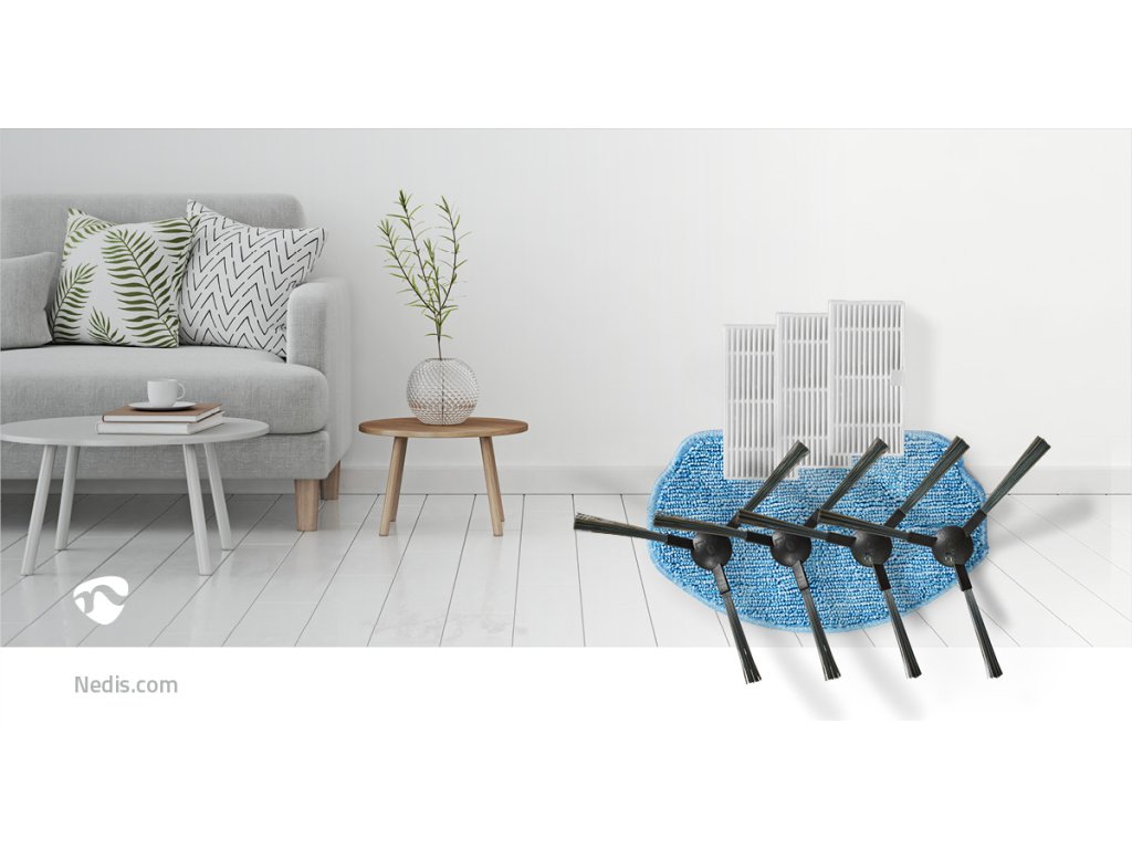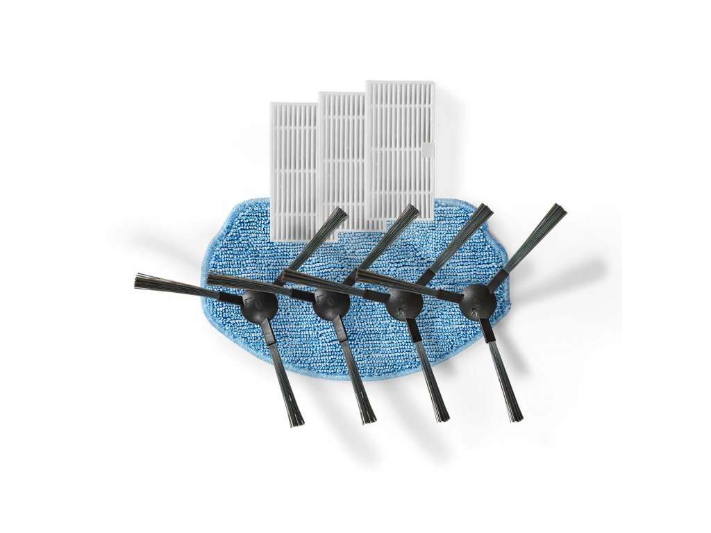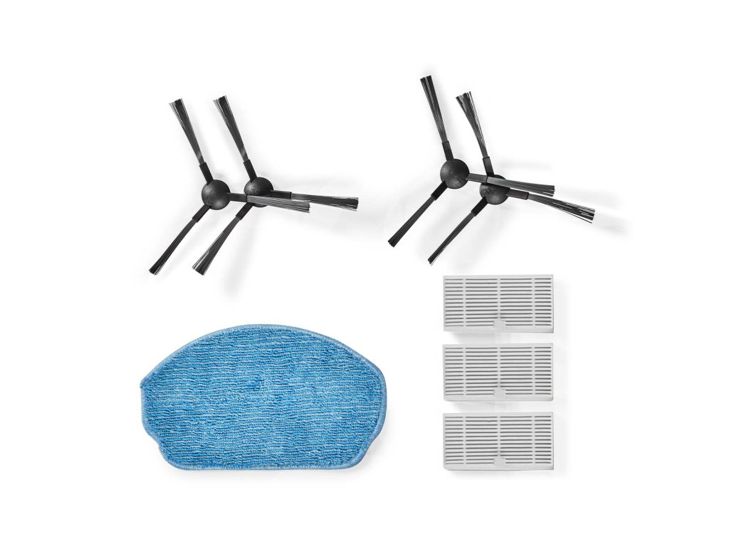 Sada vyměnitelných dílů robotického vysavače NEDIS WIFIVCR001CBK. Pokud je robotický vysavač používán denně, má tato sada vše, co potřebujete na dalších 6 měsíců: